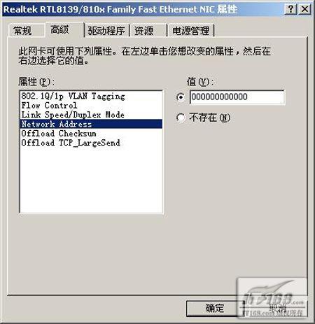 打開(kāi)“網(wǎng)上鄰居”屬性,選中對(duì)應(yīng)的網(wǎng)卡并選擇屬性,在屬性頁(yè)的“常規(guī)”頁(yè)中點(diǎn)擊“配置”按鈕。在配置屬性頁(yè)中選擇“高級(jí)”,再在“屬性”欄中選擇“Network Address”,在“值”欄中選中輸人框,然后在輸人框中輸人正常接入那臺(tái)電腦的MAC地址,再設(shè)為相同的IP地址,就可單機(jī)正常上網(wǎng)。但這種方法只適合于某臺(tái)電腦需要臨時(shí)上網(wǎng)的情況。