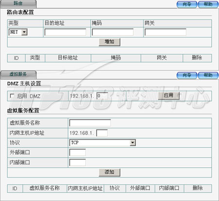 NR205寬帶路由器支持靜態(tài)路由功能,允許用戶自己編輯路由表?!癗AT”界面主要用于設置DMZ主機和虛擬服務器。這些都是組建較為復雜的局域網(wǎng)所必需的功能。