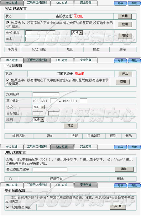 對于家用寬帶路由器來說,防火墻功能是比較重要的功能,它可大大提升這些非專業(yè)用戶的網(wǎng)絡安全水平,比如開啟“安全防御”功能之后,可以抵御“沖擊波”等常見的網(wǎng)絡病毒攻擊。磊科大大簡化的了這些功能,用戶甚至不太清楚開啟這個功能具體的是調(diào)整了那些參數(shù),但的確帶來了方便。