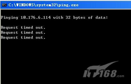 為了驗證本地工作站的網卡設備工作狀態(tài)是否正常,筆者又使用Ping命令對本地工作站的網卡設備地址進行了連通性測試,結果發(fā)現Ping命令執(zhí)行很成功,這也說明故障工作站的網卡設備工作狀態(tài)也是正常的。接下來,筆者又在故障工作站中測試了局域網網關地址的連通性,測試得到的結果竟然為“Request timed out”(如圖2所示),這說明本地工作站到局域網網關設備之間的網絡連通性存在一定的問題。難道真的是局域網的路由器或網關設備出現了意外?不過轉念一想筆者認為這不可能,因為在來故障工作站現場之前,筆者已經在自己的工作站測試了局域網網關地址的連通性,發(fā)現它是可以被正常Ping通的呀;再仔細檢查故障工作站系統(tǒng)桌面中的任務欄圖標,發(fā)現其中的本地連接圖標狀態(tài)顯示為“100M已連接上”。