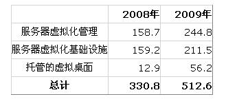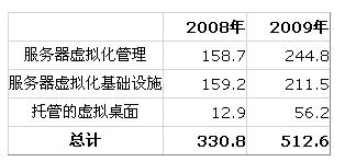 表1 EMEA: 2008-2009虛擬化軟件銷售總收入預(yù)測(百萬歐元)