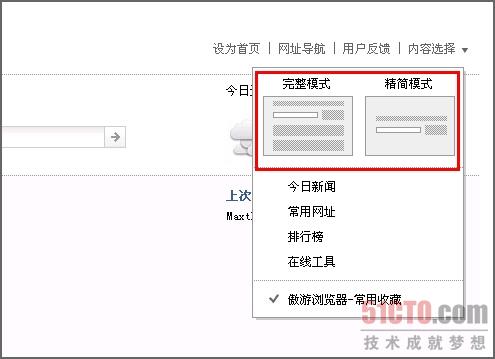 啟用傲游瀏覽器,傲游起始頁就會映入我們的眼簾。起始頁主要包括以下幾部分:多重搜索欄、經常訪問收藏和上次訪問網址列表、以“頭條”字體顯示的重大新聞事件、常用網址列表、常用軟件下載列表等。如果用戶希望看到所有資訊內容,可以通過起始頁面的“內容選擇”菜單,將其切換到“完整模式”。若用戶只需要看到少部分資訊內容,同時只使用一部分搜索功能,那么“精簡模式”則是您的首選風格(如圖1)。