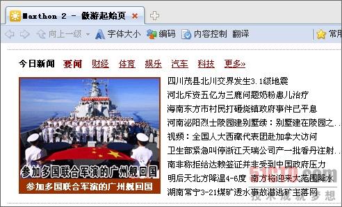 圖2 通過個性定制,直接打開傲游瀏覽器便可瀏覽到國內外大事