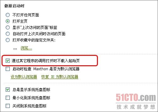 圖6 通過傲游瀏覽器常規(guī)設置的啟動加載選項可以對起始頁啟動方式進行調整
