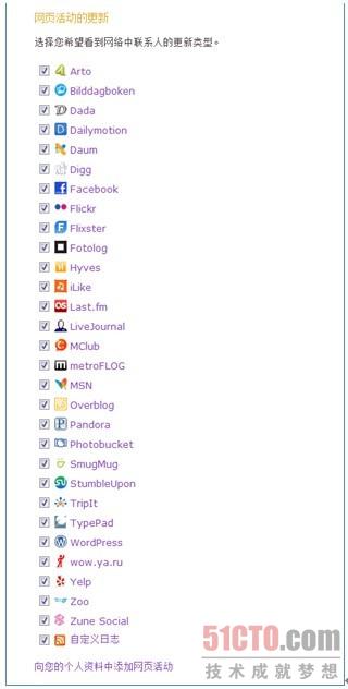 圖:用戶可選擇同步聚合到Windows Live“最新更新”中的合作伙伴列表