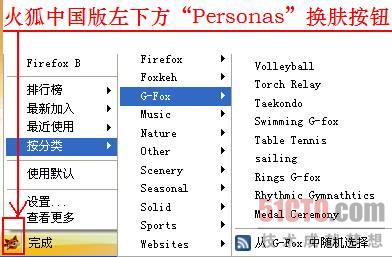 如果大家下載的是火狐中國(guó)版2009.5(火狐官方下載地址:http://www.g-fox.cn/),太方便了!火狐中國(guó)版2009.5內(nèi)置火狐“炫彩風(fēng)格”Personas換膚工具,直接點(diǎn)擊瀏覽器左下方的“狐貍”按鈕,你就可以在任何時(shí)候,按照你的心情、愛好,甚至今天的天氣給你的瀏覽器換皮膚!