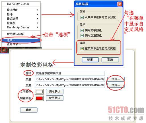 點(diǎn)擊火狐瀏覽器左下角的“狐貍”按鈕—〉“選項(xiàng)”,勾選“高級(jí)”-“在菜單中顯示自定義風(fēng)格”,即可定制火狐“炫彩風(fēng)格”了。選中你喜歡的圖片,設(shè)定好瀏覽器頁眉和頁腳,調(diào)整一下文字顏色,不用成為繪圖高手,更無須了解編碼,10秒鐘即可完成火狐皮膚的制作!最后,別忘了給你的作品起一個(gè)名字,點(diǎn)擊“確定”——大功告成!