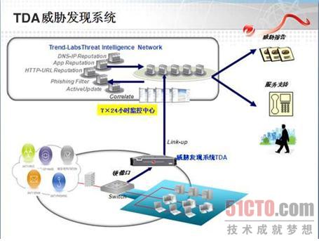 相信,安全管理中心小吳的經(jīng)歷與感受對于各位IT管理人員都不陌生。應(yīng)對激增的網(wǎng)絡(luò)威脅以及龐大的企業(yè)網(wǎng)絡(luò),可以實(shí)時(shí)、有效地掌握企業(yè)網(wǎng)絡(luò)安全狀態(tài),處理病毒源頭成為每一位IT管理人員的夢想。近日,針對于大量客戶的網(wǎng)絡(luò)安全威脅檢測、安全弱點(diǎn)監(jiān)測等需求,全球互聯(lián)網(wǎng)內(nèi)容安全領(lǐng)導(dǎo)者趨勢科技最新推出了全新概念的威脅發(fā)現(xiàn)系統(tǒng)是TDS。在TDS 系統(tǒng)中的關(guān)鍵組件TDA 可以對企業(yè)網(wǎng)絡(luò)安全環(huán)境進(jìn)行智能分析,對于現(xiàn)有的防毒架構(gòu)提升更高層次的管理指標(biāo),從而大大提高網(wǎng)絡(luò)、數(shù)據(jù)的安全系數(shù),真正達(dá)到事半功倍的效果。再加上 TDS 中的另一個(gè)關(guān)鍵組件7*24 小時(shí)的忠實(shí)哨兵守衛(wèi), 將TDA 所分析的結(jié)果, 變成詳細(xì)的處理措施并進(jìn)行落實(shí)
