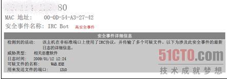 【51CTO.com 綜合消息】昨天,安全管理中心的小吳又加班到了凌晨。而對他來講,能夠在零點(diǎn)前回家已經(jīng)是這些日子以來比較早的了。因?yàn)樾前l(fā)現(xiàn)公司出現(xiàn)了Worm_Down 蠕蟲病毒,他雖然已經(jīng)處理了幾臺(tái)計(jì)算機(jī),但是感染的情況還是沒有緩解,為此,全力尋找蠕蟲病毒的感染源成為小吳的首要工作。除了 Worm_Dowm 的病毒難以處理之外,公司同事也頻繁反應(yīng)計(jì)算機(jī)運(yùn)行緩慢、上網(wǎng)速度變慢等一系列應(yīng)用問題,這讓小吳急于想要了解是什么威脅造成了公司網(wǎng)絡(luò)的不正常狀態(tài)?公司內(nèi)到底還有哪些威脅事件?針對一連串的問題,小吳心理也沒有底兒,不知道何時(shí)又會(huì)出現(xiàn)高危事件的感染……
