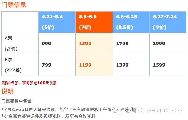 現在,所有人都可以用1599元購買到原價2000的大會門票。而我們51CTO微信訂閱用戶,則可以在當前票價的基礎上(目前是1599),享受「5人購票 1人免單」活動,即以 4 張票的價格,購買到 5 張票。